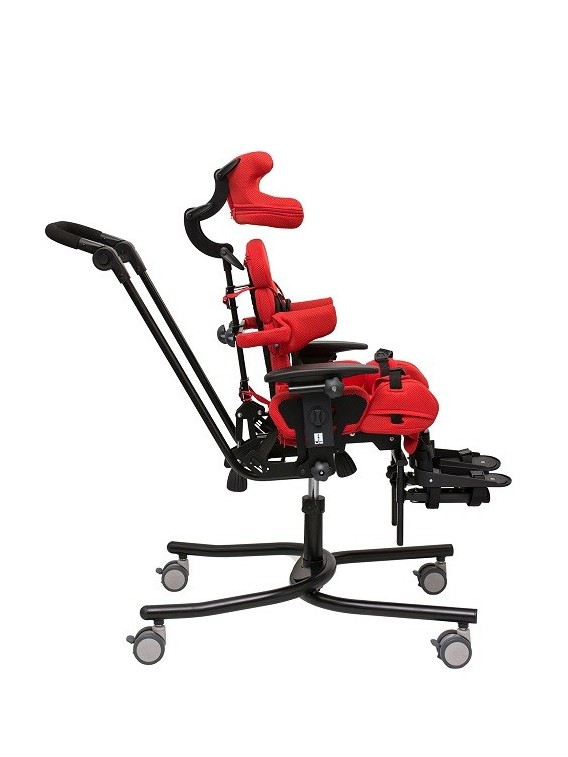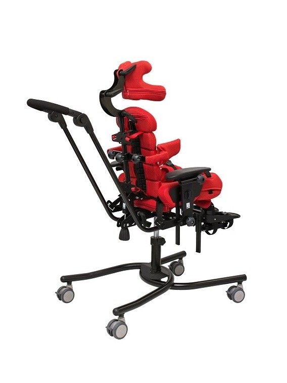 Zbudowany jest ramy jezdnej RS z regulacją wysokości, siedziska, kół, tapicerki, pasów stabilizujących miednicę, podłokietników, kamizelki, pelot piersiowych, pelot biodrowych, pelot przykolanowych wraz z pasami odwodzącymi, rączki do prowadzenia, podnóżka wraz z pasami do stóp. Całość pokryta jest tapicerką, którą można zdejmować do prania.