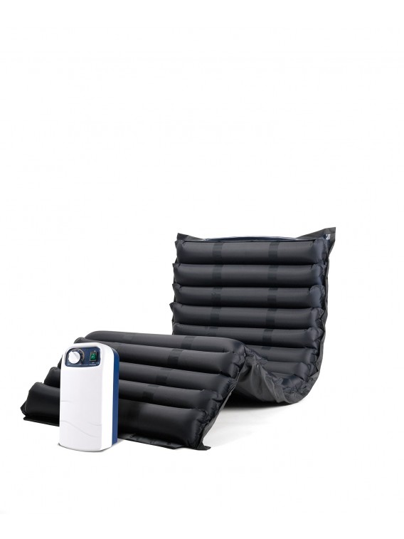 MAT X3 rurowy materac zmiennociśnieniowy. Niezwykle skuteczny przy profilaktyce i leczeniu odleżyn do II stopnia EPUAP/NPUAP włącznie. Materac składa się z 18 wymiennych komór wysokich na 11,4 cm . Zaleca się stosowanie materaca razem z dodatkowym materacem gąbkowym.