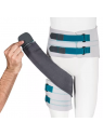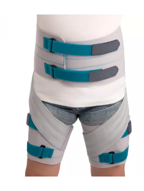 Dynamiczna orteza derotacyjna kończyn dolnych składa się z pasa biodrowego oraz dwóch opasek udowych, które to elementy połączone są ze sobą za pomocą elastycznych taśm, które po połączeniu z powyższymi elementami będą wywoływać efekt zwiększonej rotacji wewnętrznej i przywiedzenia lub rotacji zewnętrznej i odwiedzenia kończyn dolnych w stawach biodrowych – w zależności od sposobu zapięcia. Pas biodrowy oraz zapięcia udowe są wykonane z veluru i pokryte z zewnątrz taśmami velcro, wewnętrzna strona jest pokryta silikonowymi elementami antypoślizgowymi, które zapewniają bardzo dobre przyleganie do ciała i nieprzesuwanie się elementów na ciele pacjenta, co zapewnia skuteczność korekcji.