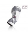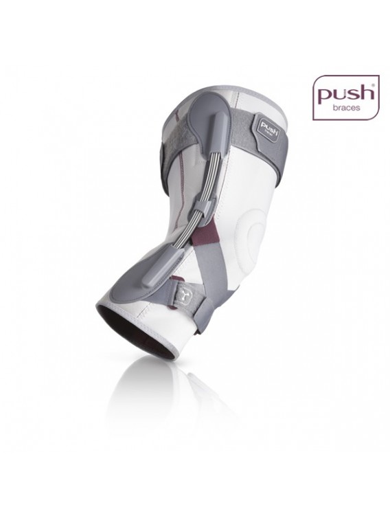 Orteza na kolano PUSH MED zapewnia solidne podtrzymanie stawu kolanowego w pozycji środkowo-bocznej. Kolano jest podtrzymywane przez dwa sprężyste, blaszkowe zawiasy, które w unikalny sposób współdziałają z naturalnymi ruchami obrotowymi kolana. Oznacza to, ze zginanie oraz prostowanie nogi w kolanie nie jest utrudnione. Budowa taśmy zapewnia odpowiednie dopasowanie żebrowych zawiasów do stawu. Dobre dopasowanie anatomiczne oraz wstawka silikonowa pomagają w utrzymaniu ortezy na miejscu podczas chodzenia. Dzięki swoim małym rozmiarom, orteza ta jest niewidoczna, jeśli nosi się ja pod ubraniem.