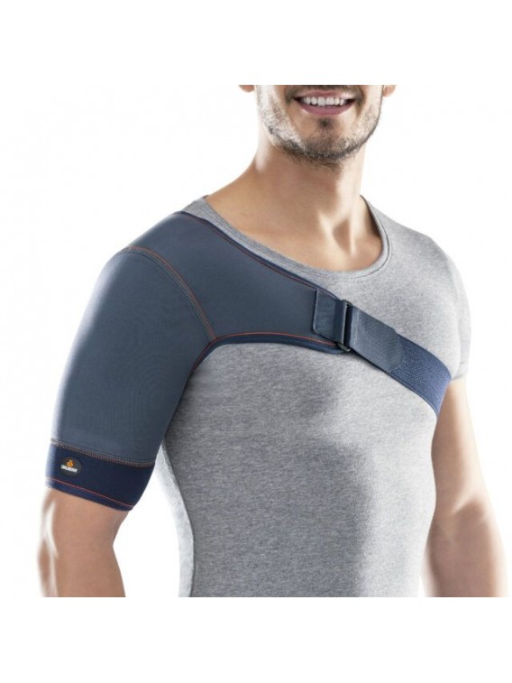 Neoprenowy rękaw obejmujący ramię i bark, dociągany elastyczną taśmą, zapinaną na velcro. Zastosowanie: podwichnięcia stawu barkowego, lekkie niestabilności, przewlekłe dolegliwości bólowe barku.