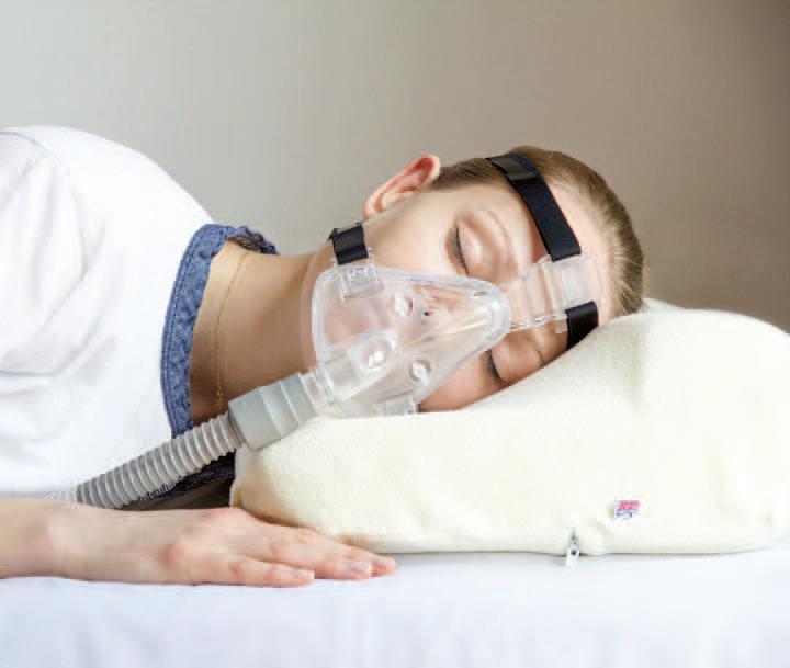 Specjalnie wyprofilowane kształty dają możliwość komfortowego leżenia na boku lub barku bez ucisku na maskę doprowadzającą powietrze lub czynnik inhalujący i wymuszający oddech nadciśnieniem.