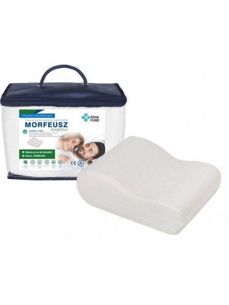 Podróżna poduszka ortopedyczna wykonana z pianki termoelastycznej, doskonale sprawdza się u osób często śpiących poza domem. Mała i poręczna - idealna, aby zabrać ją ze sobą do hotelu. Szczególnie zalecana dla osób wymagających profilaktyki zdrowego snu, osób mających szyję wrażliwą na nacisk oraz skórę podatną na odgniecenia. Do stosowania stacjonarnie w obiektach wypoczynkowych. Przeznaczona dla osób o dowolnej budowie ciała i wzrostu, dla śpiących na wznak lub na boku. Poduszka ortopedyczna Morfeusz Podróżny zapewnia odpowiednie podparcie i prawidłową pozycję odcinka szyjnego kręgosłupa oraz głowy podczas snu. Dzięki zastosowaniu pianki termoelastycznej („z pamięcią”) poduszka doskonale dopasowuje się do ciała pod wpływem jego ciężaru i temperatury.