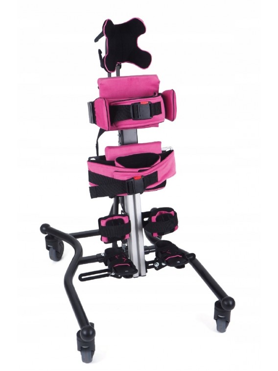 Podparcie głowy realizowane jest za pomocą zagłówka konturowego stabilnie przytrzymującego głowę. Zagłówek wykonany jest z elastycznego materiału co umożliwia dopasowanie do kształtu głowy dziecka. Użycie zagłówka możliwe jest w trakcie pionizacji tylnej.