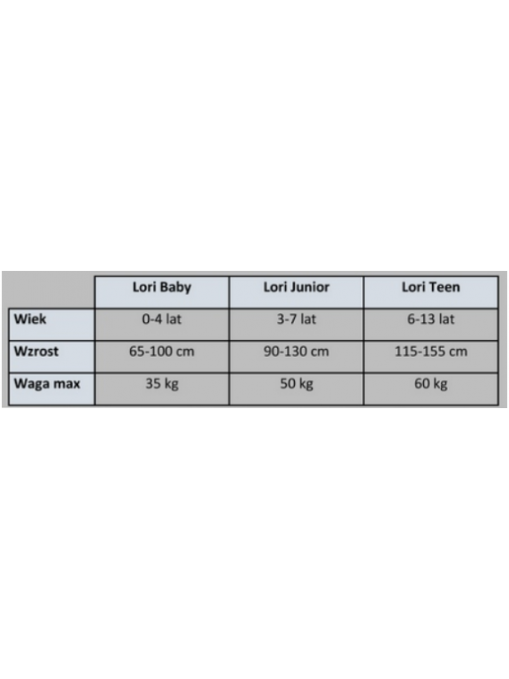 Lori w rozmiarze Baby to jeden z najmniejszych pionizatorów na rynku, co sprawia że możemy dopasować go do potrzeb dziecka od około 65 cm wzrostu.