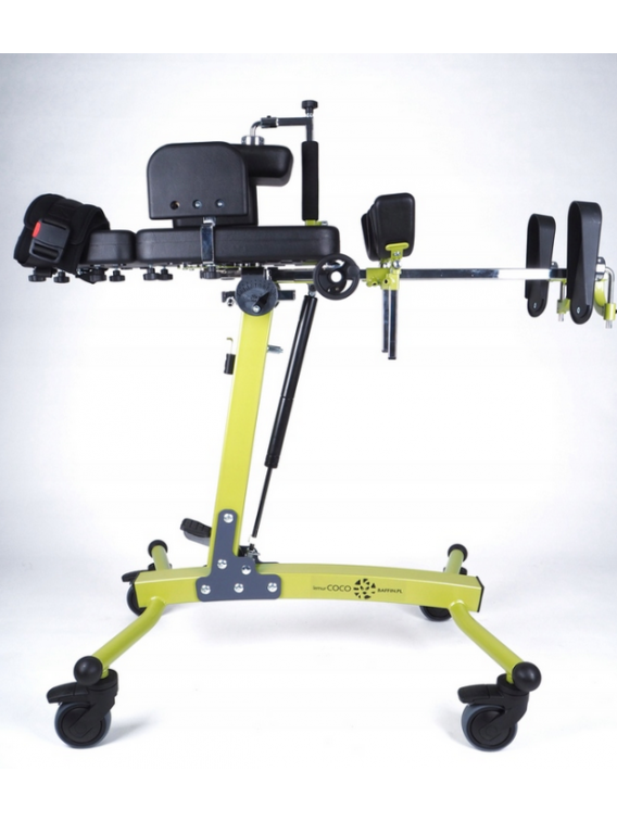 Pionizator COCO umożliwia pionizację pacjenta w pozycji przedniej i tylnej. Urządzenie umożliwia odwiedzenie kończyn dolnych w pionizacji z pomiarem kąta dla lewej i prawej nogi (0o – 30o). Funkcja ta umożliwia regulowanie nóg w płaszczyźnie czołowej tak, aby odpowiednio ustawić głowę kości udowej w panewce. W rezultacie uzyskujemy odwiedzenie gwarantujące poprawne ustawienie stawu biodrowego, a w konsekwencji zapobiegające dysplazji tego stawu.