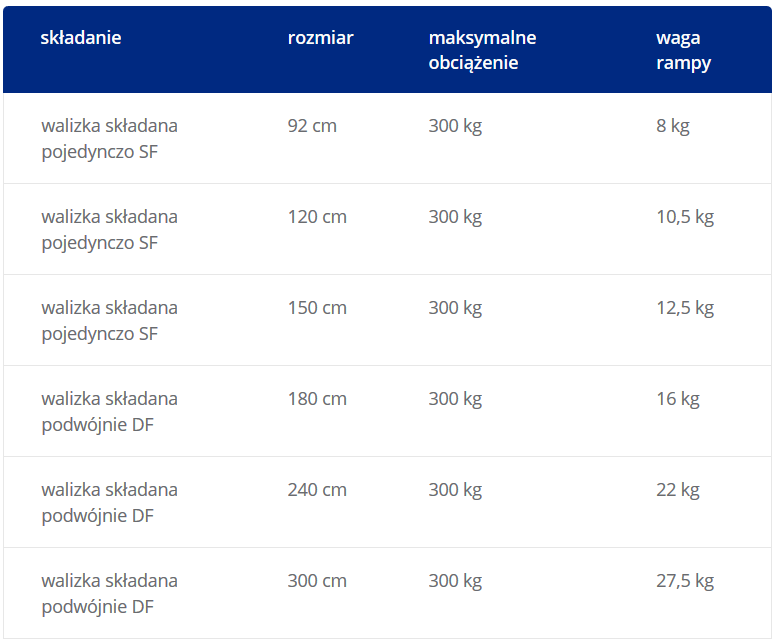 Rampy są trwałe i lekkie, a rozłożenie ich nie zajmuje więcej niż 30 sekund. Po złożeniu nie są większe i bardziej nieporęczne od zwykłej walizki, a dzięki zamontowanemu uchwytowi przenosi się je łatwo i szybko.