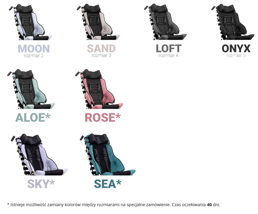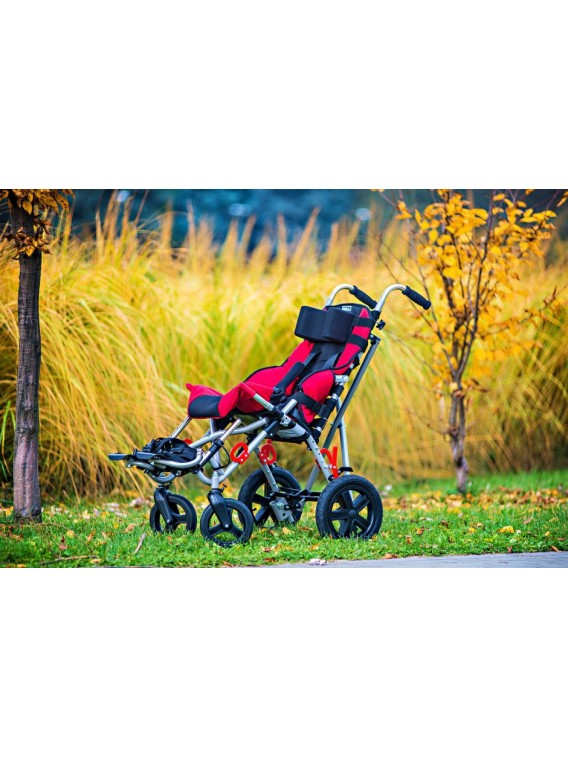 Lekki, składany w formę parasolki i bardzo wytrzymały wózek dla dzieci oraz dorosłych. Posiada innowacyjne siedzisko BodyPrint, które za pomocą pasów możemy dopasować do użytkownika. Siedzisko może być płaskie lub wklęsłe, wszystko zależne od potrzeb i dysfunkcji.
