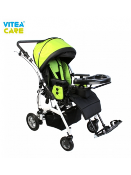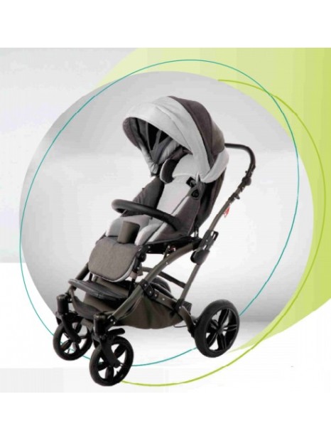 Dzięki regulowanym pelotom możliwe jest optymalne dopasowanie oparcia do potrzeb dziecka i jego prawidłowe zabezpieczenie. Duże koła z amortyzacją zarówno z tyłu jak i przodu, ułatwiają komfortowe pokonywanie nierówności.